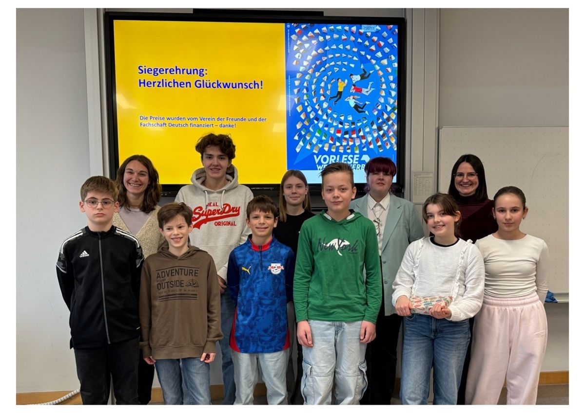 Mit Engagement und Lesefreude waren die Schülerinnen und Schüler der Klassen 6 a-f am Start und begeisterten ein kleines Publikum, das aus Mitschülerinnen und Mitschülern bestand, mit spannenden Auszügen aus ihren Lieblingsbüchern. Bewertet wurden Lesetechnik, Interpretation und Textstellenauswahl. Letztlich überzeugte Lucia die Jury in allen Kategorien und zudem besonders durch ihren lebendigen Vortrag des Fremdtextes.
