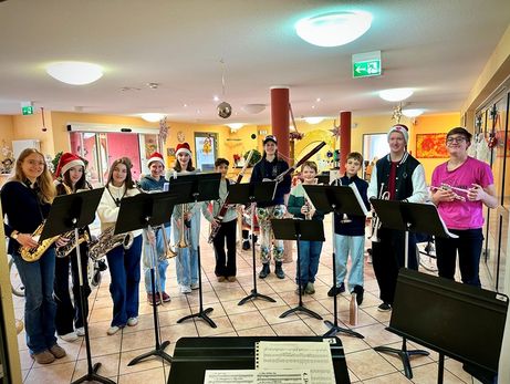Am Dienstag, 09.12.2025, überraschte das Bläserensemble des DBG die Bewohnerinnen und Bewohner des Seniorenpflegehauses Sonnenbogen mit weihnachtlicher Musik.
